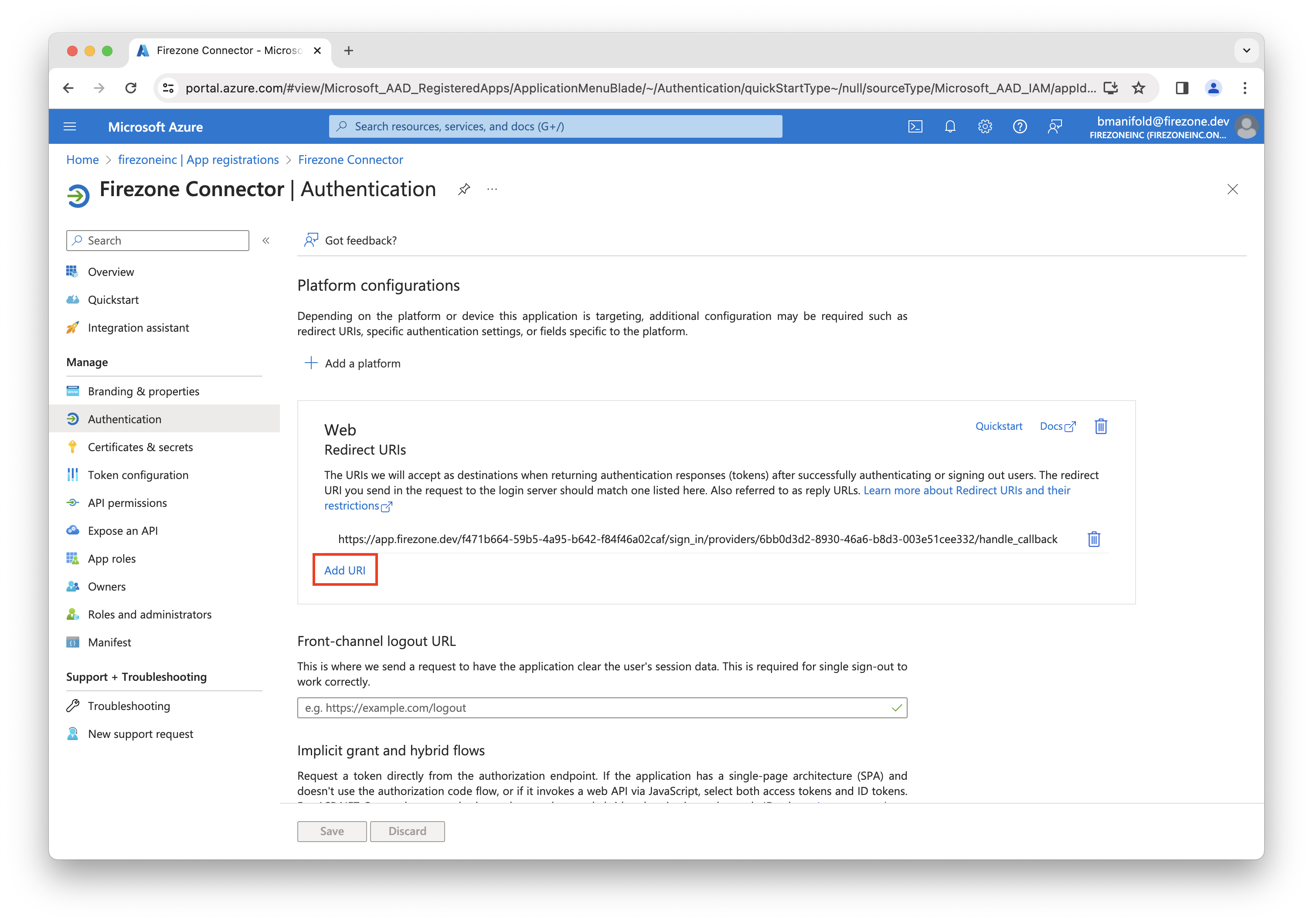 Enter the second Redirect URI shown in the setup page from the Firezone admin portal and click Save.
