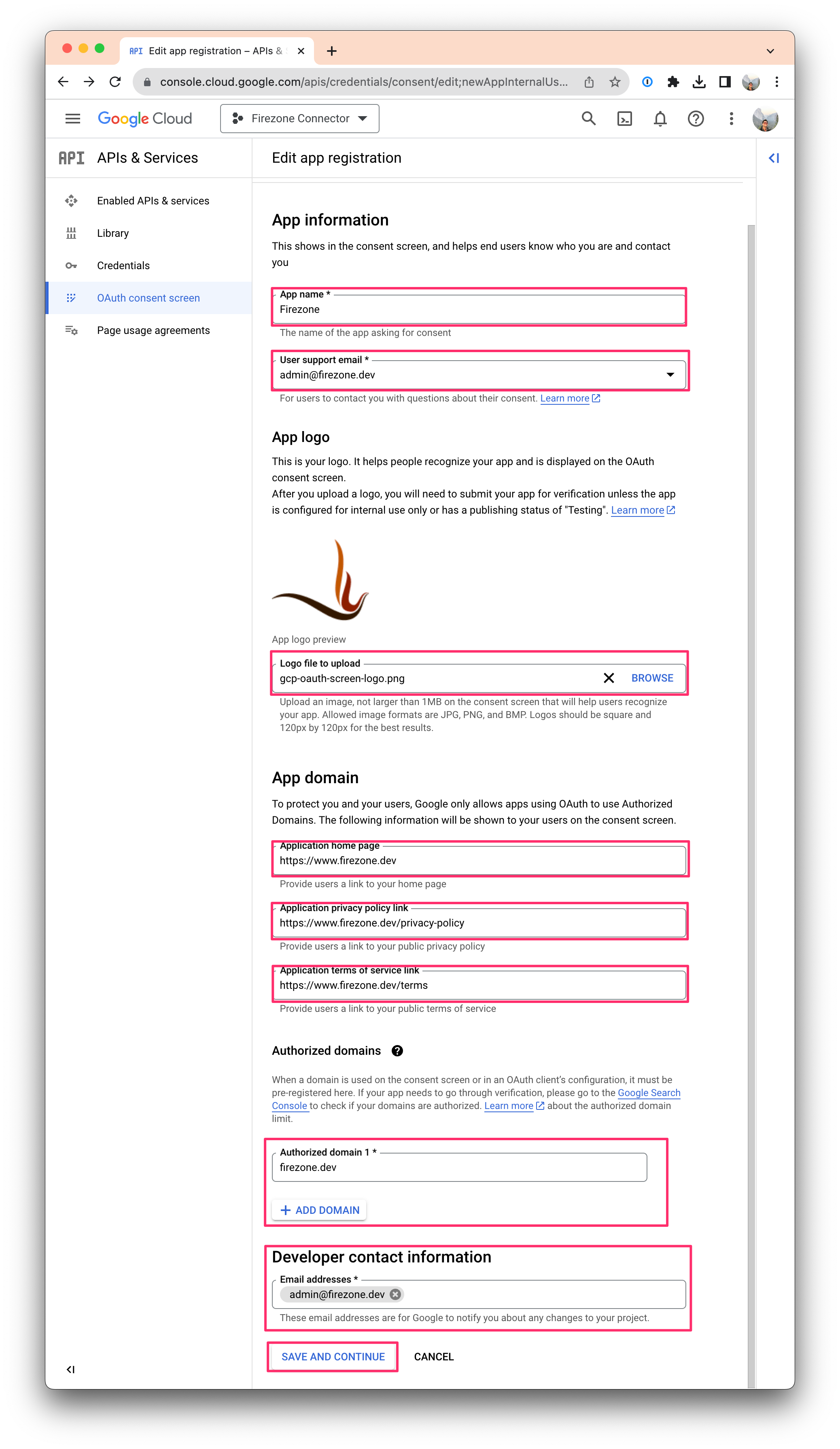 - App logo (optional): Download the Firezone logo here to use for this consent screen.
