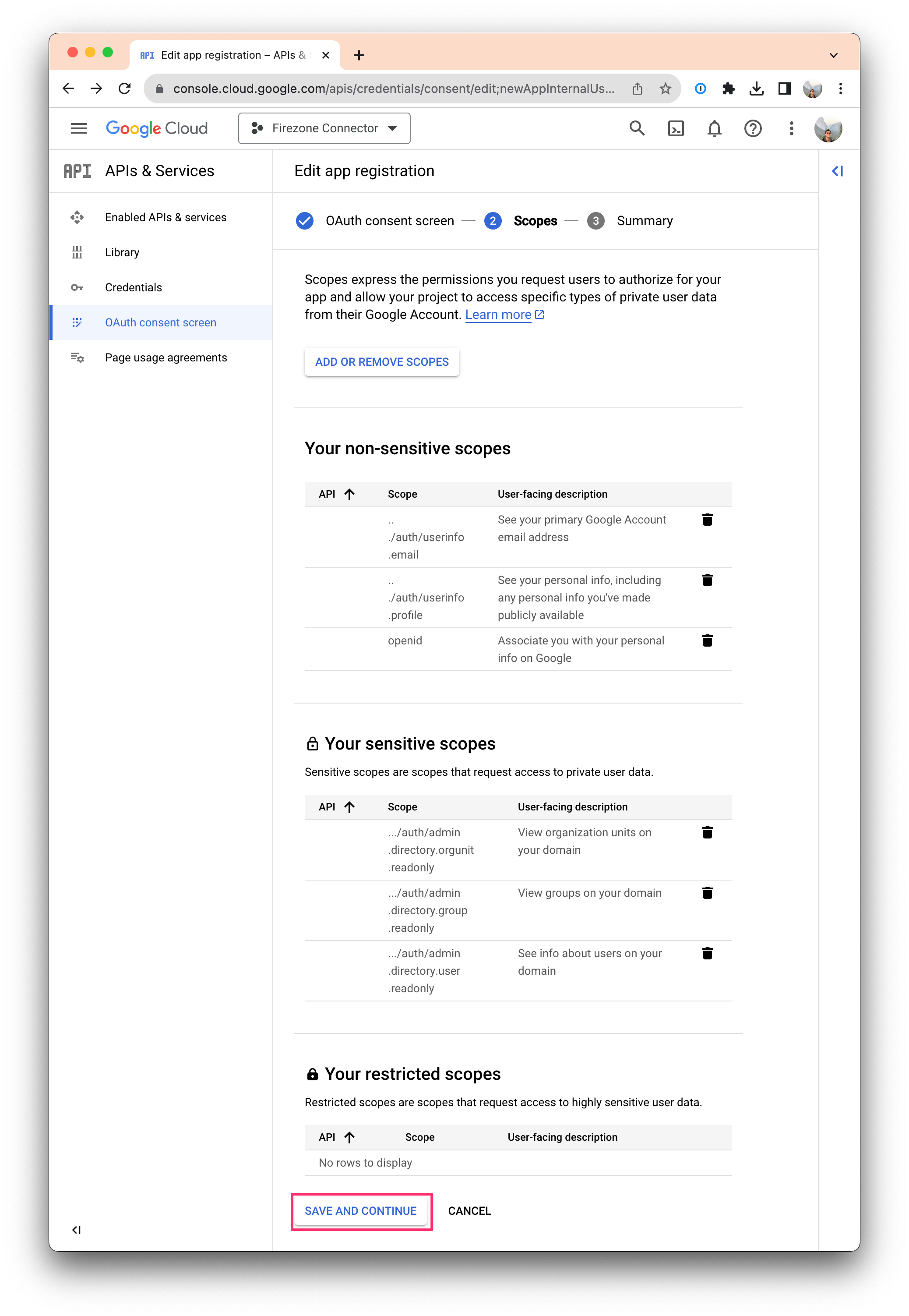 OAuth scopes determine what information the Firezone connector is allowed to receive when a user authenticates.