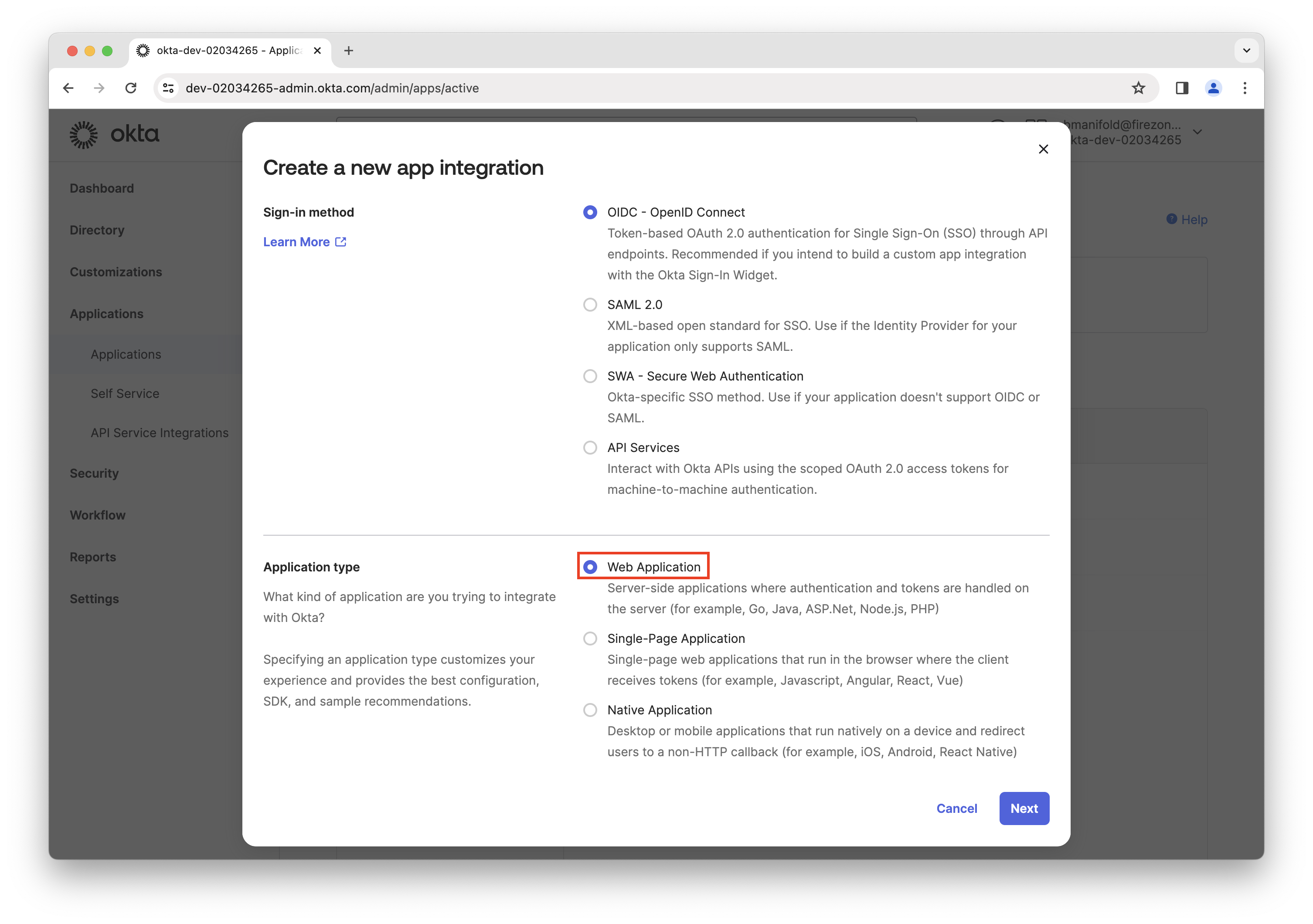 Step 2: Create a new OIDC app in Okta